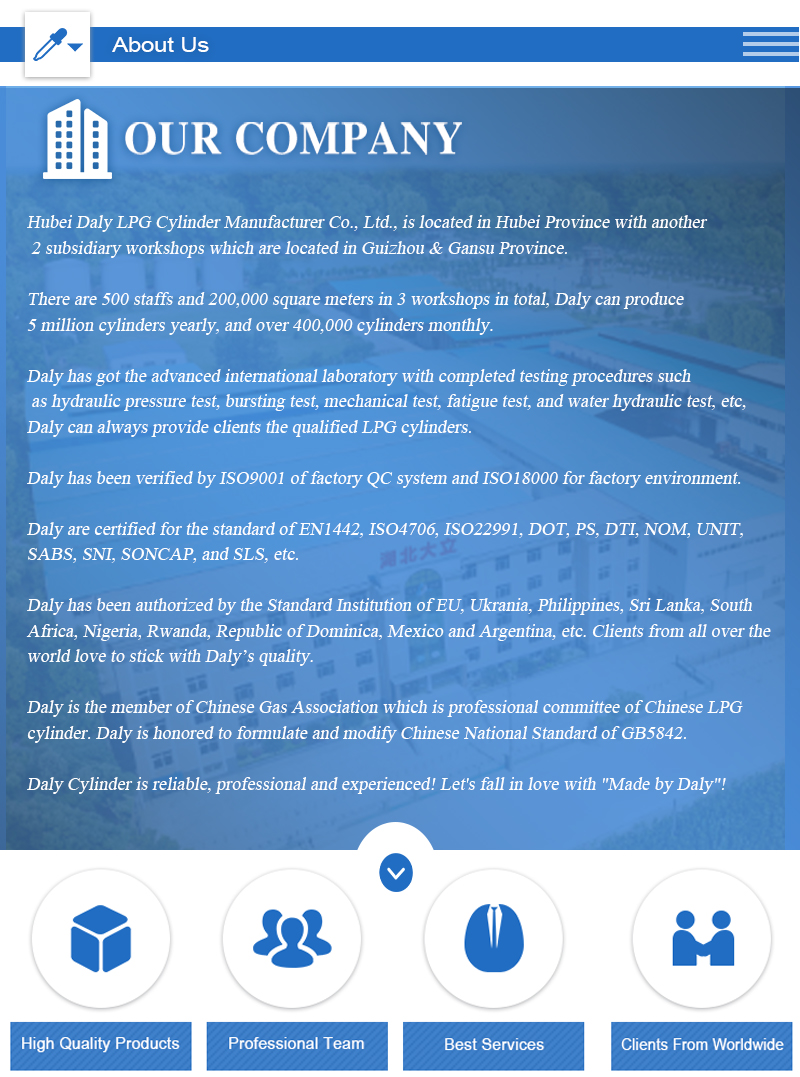 A:Smo profesionalni proizvajalec LPG cilindrov. Dobrodošli, da nas obiščete, ko ste na voljo.